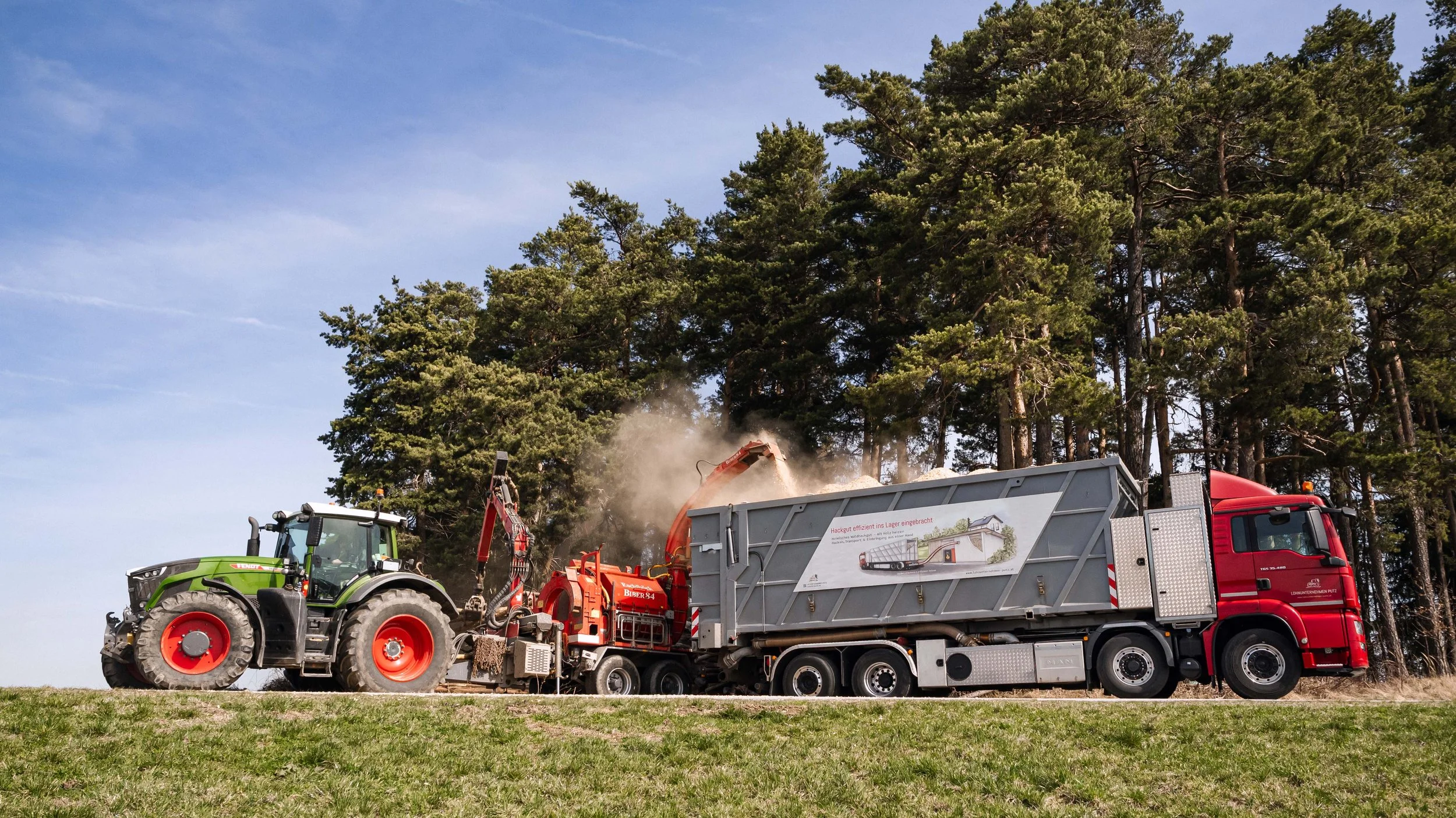 Die Hackguterzeugung erfolgt bei uns mit der Hackmaschine Biber 84 - mit LKW oder Zapfwellenmaschine. Je nach Bedarf und Lage kommen die Maschinen zum Einsatz.
